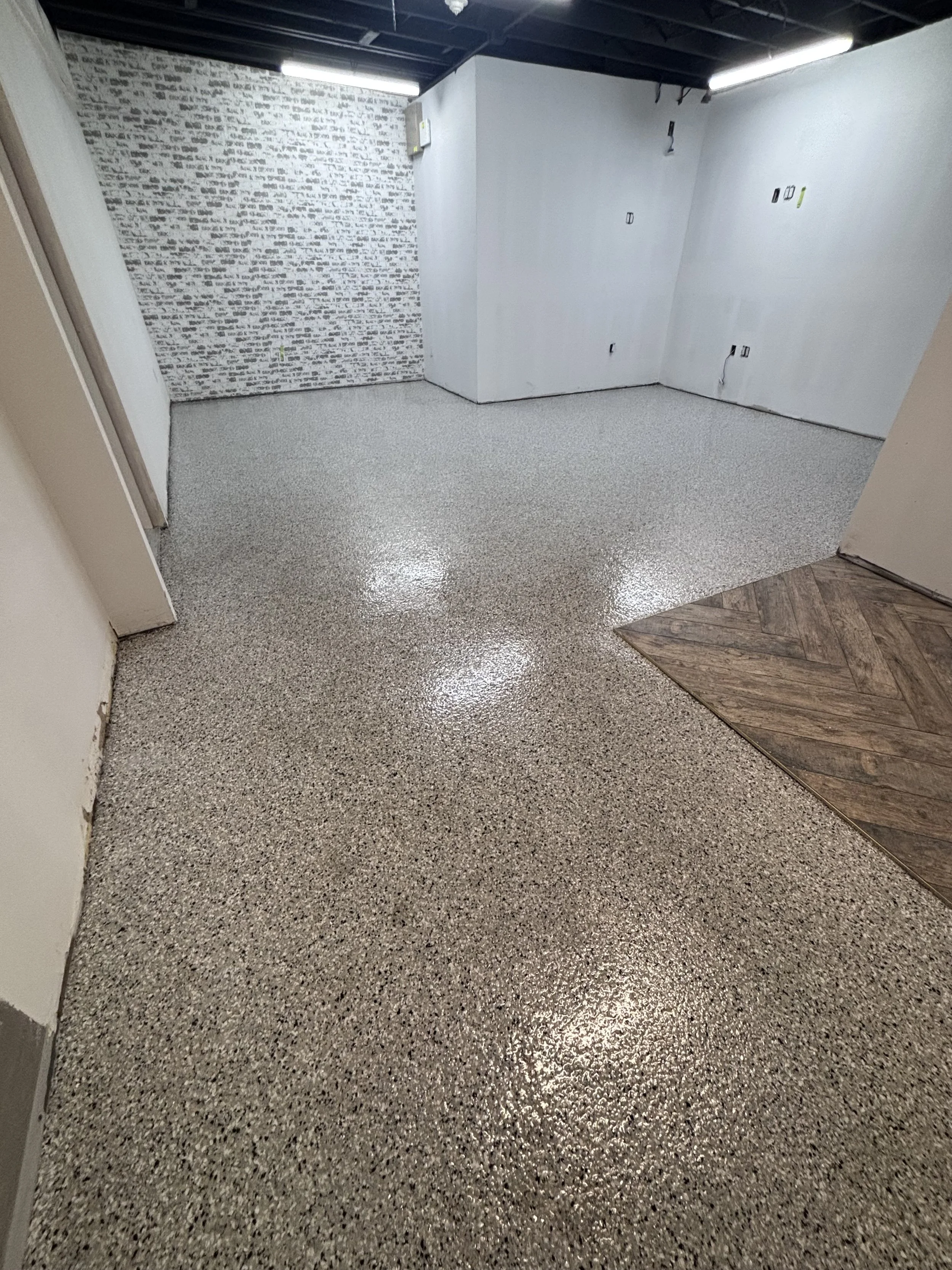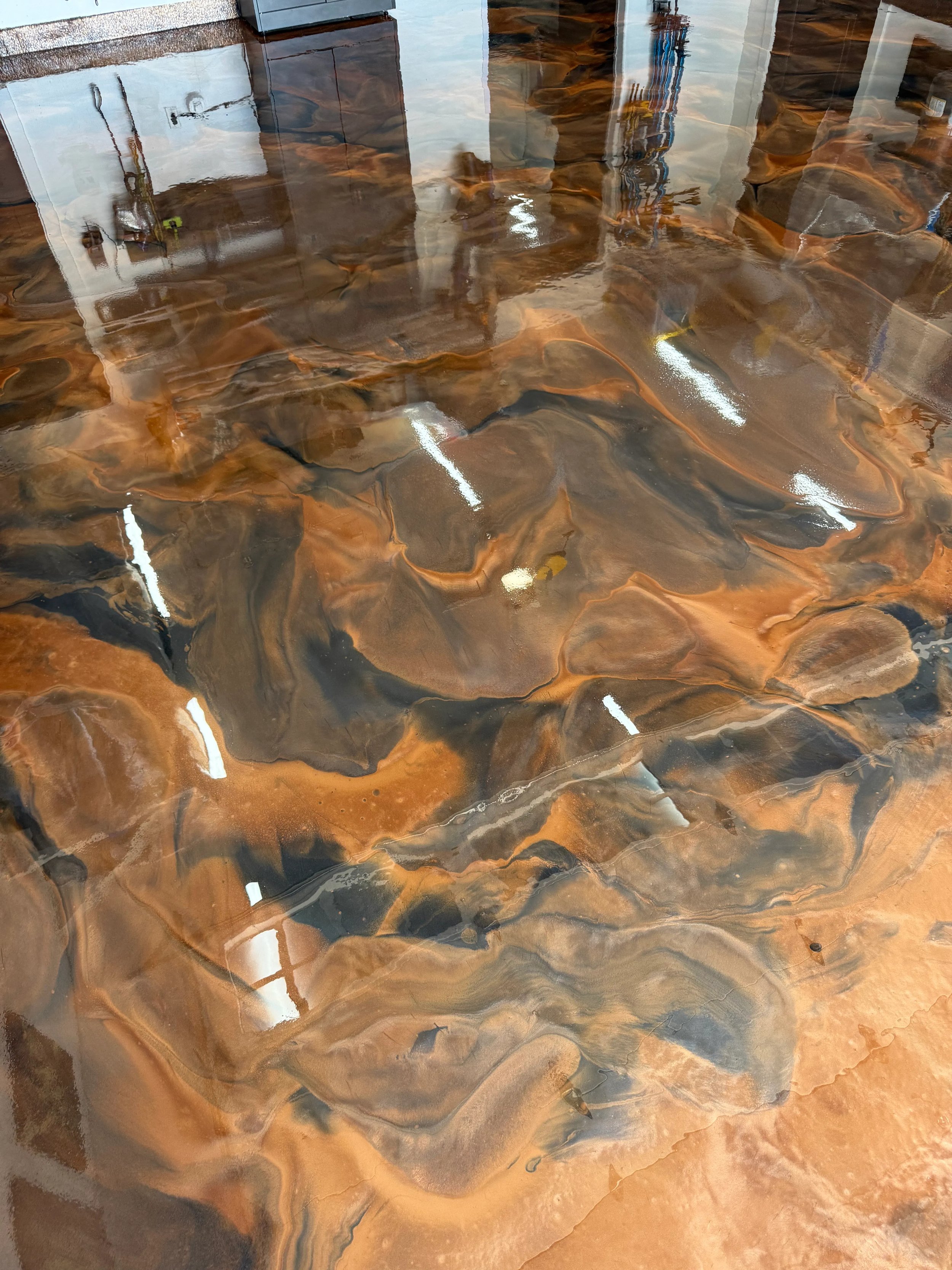 Flaked Epoxy Floor Build your flaked floor! Book an appointment! Metallic Epoxy Floor Build your own metallic floor! book an appointment!